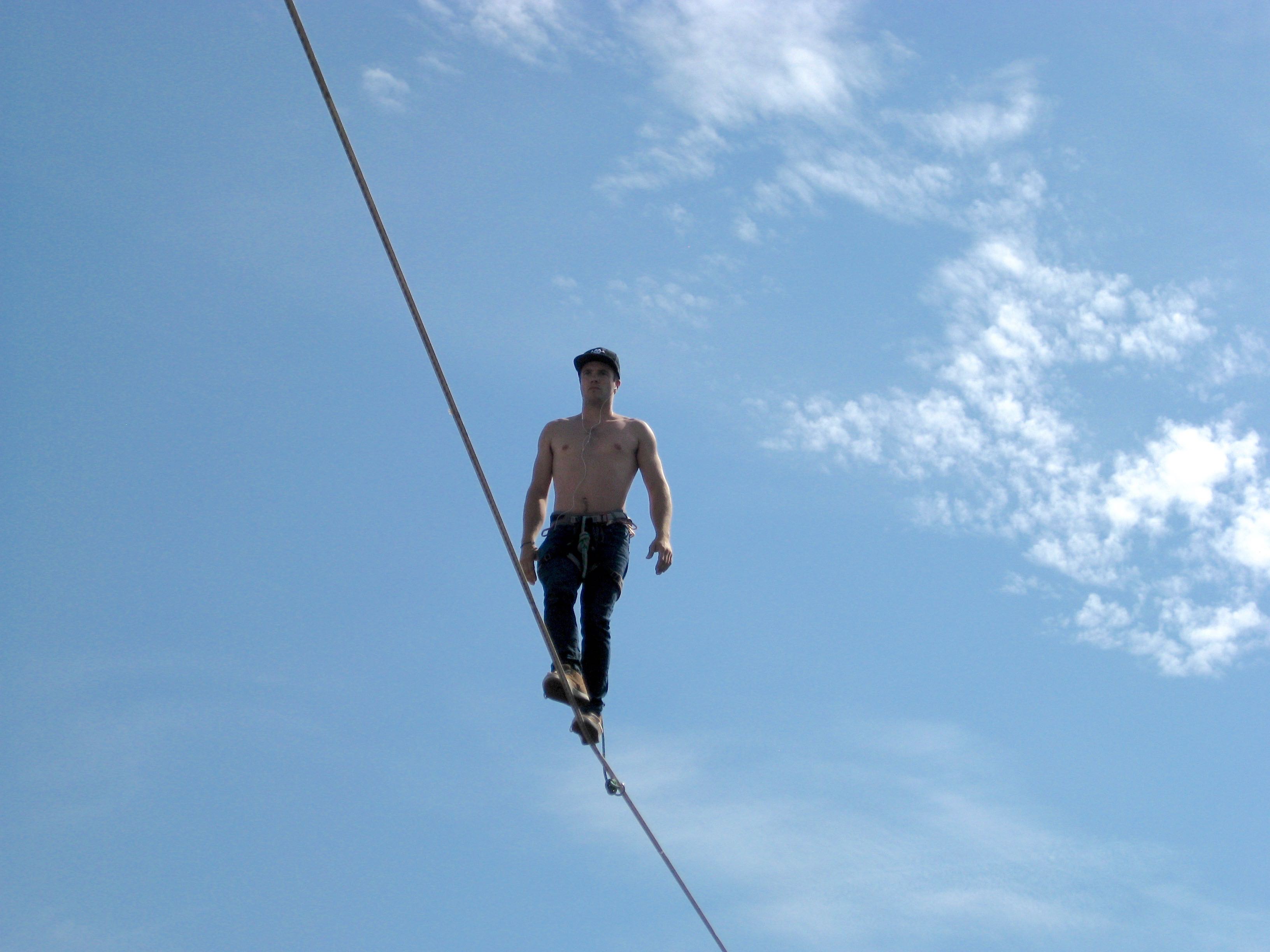 Pablo on the full poly highline record !