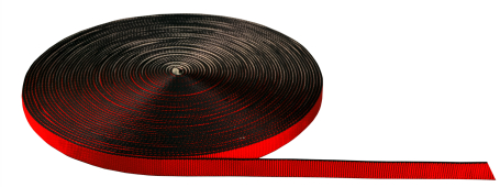 Elle est bicolore : rouge d’un coté et blanc de l’autre. 25mm de largeur. Avec ses 3.6mm d’épaisseur , ce qui est très épais, on parle de 69 gramme au mètre. La rupture est annoncée à 3,3 tonnes ce qui est correcte.